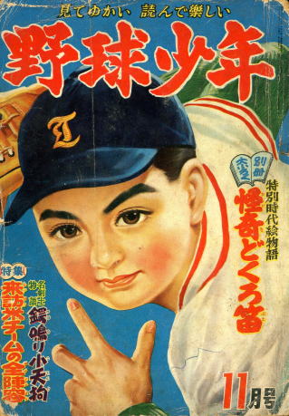 | 「野球少年」は、芳文社が1947年に創刊された少年漫画誌のひとつ。 1956年に休刊。 (注)目次欠け |
